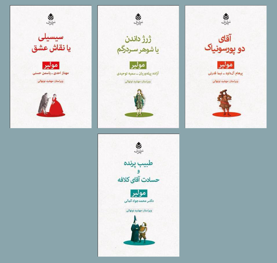 کتب منتشر شده در مجموعه مولیر، حاصل یکسال تلاش کلیه مترجمان جوان و با آموزشهای گرانبهای استاد مهشید نونهالی می باشد. این مجموعه در سال 1399 با همکاری موسسه فرهنگ سینا ونشر قطره به چاپ رسید. دبیر مجموعه دکتر قطب الدین صادقی، سرپرست و مسئول کارگاهها دکتر نسرین خطاط، مدرس کارگاه استاد مهشید نونهالی و مدیر امور اداری این مجموعه آرزو حسینقلی می باشد.