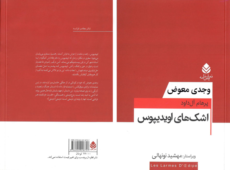کتاب اشکهای اویدیپوس اثر وجدی معوض ترجمه :پرهام آل داود ویراستار: استاد مهشید نونهالی در کارگاه های تخصصی موسسه فرهنگ سینا ترجمه و با همکاری نشر قطره منتشر گردید.