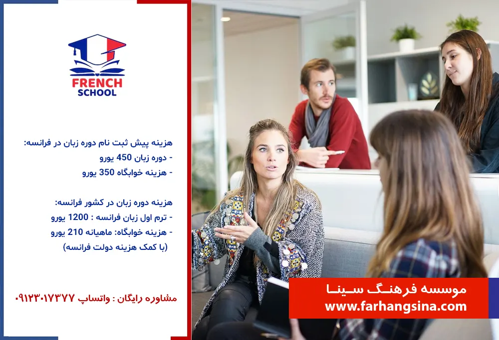 ♦ هزینه پیش ثبت نام دوره زبان در فرانسه: دوره زبان 450 یورو و هزینه خوابگاه 350 یورو است