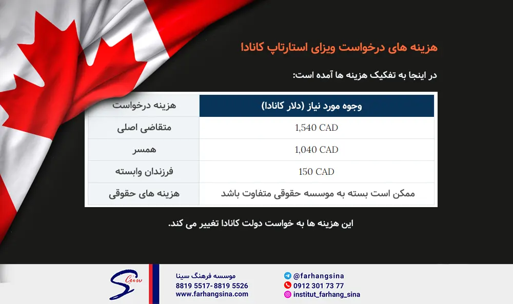 هزینه های درخواست ویزای استارتاپ کانادا شامل:
